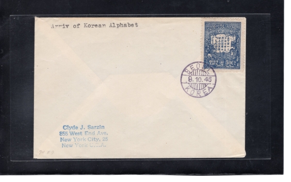ÇÑ±Û¹ÝÆ÷ 500ÁÖ³â-SEOUL, KOREA öÀÎ ÃÊÀϺÀÅõ(FDC)-1946.10.9ÀÏ