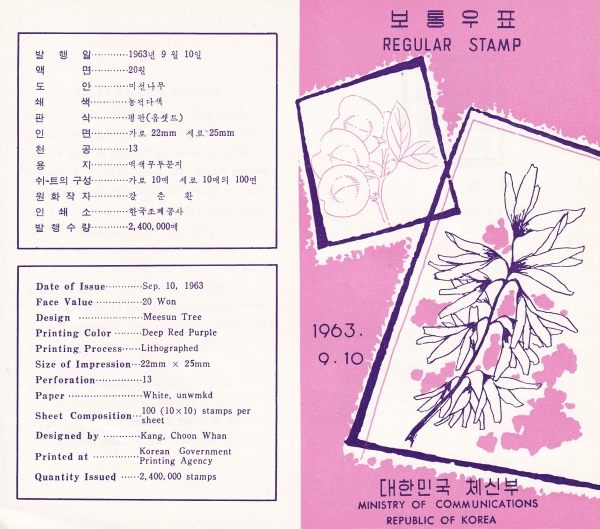 »õ¿øÈ ¿Ü±¹»ê ¹éÁöº¸Åë-20¿ø-¹Ì¼±³ª¹«-¿ìÇ¥¹ßÇà ¾È³»Ä«µå-1963.9.10ÀÏ