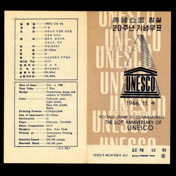 À¯³×½ºÄÚâ¼³ 20ÁÖ³â-¿ìÇ¥¹ßÇà ¾È³»Ä«µå-1966.11.4ÀÏ