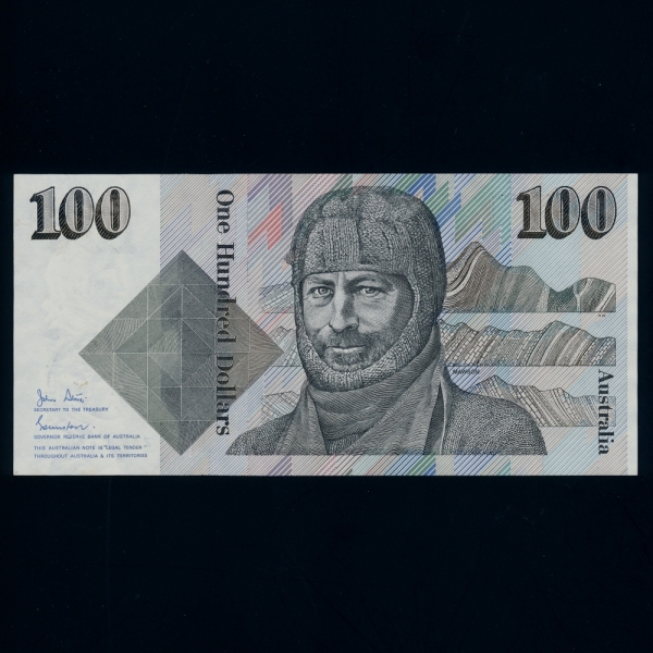 AUSTRALIA-¿À½ºÆ®·¹Àϸ®¾Æ-SIR DOUGLAS MAWSON(´õ±Û¶ó½º ¸ð½¼-ÁöÁúÇÐÀÚ),J.TEBBUTT(Á¸ Å× ºÎÆ®-õ¹®ÇÐÀÚ)-°í¾×ÁöÆó-100 DOLLARS-1984³â