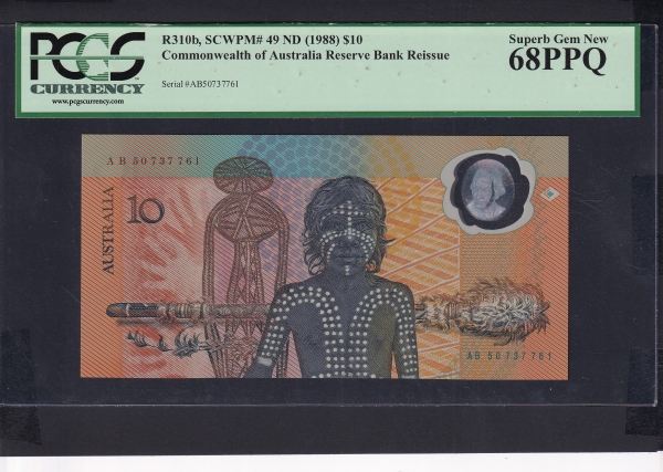 AUSTRALIA-¿À½ºÆ®·¹Àϸ®¾Æ-PCGS68PPQ-10 DOLLARS-#49-1988³â