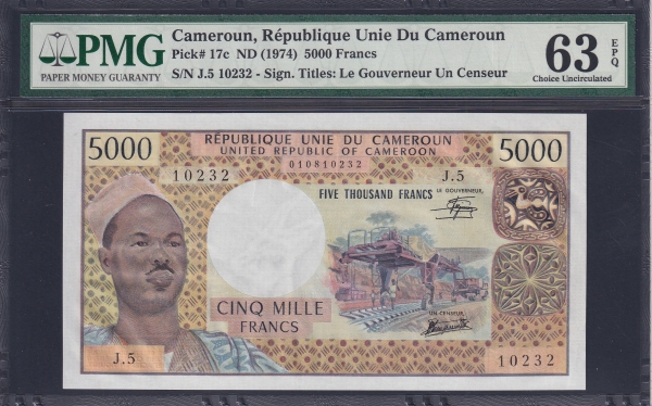 CAMEROUN-Ä«¸Þ·é-PMG63-5,000 FRANCS-#17c-1974³â