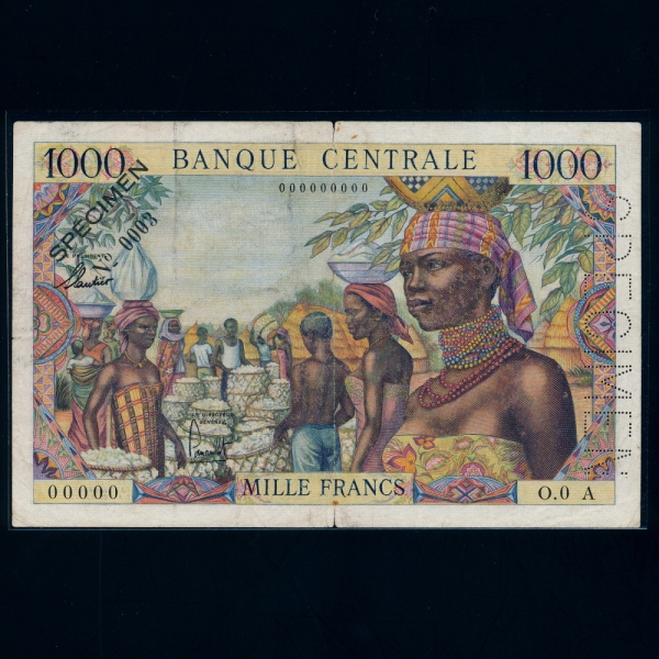 EQUATORIAL AFRICAN STATES-ÇÁ¶û½º Àûµµ ¾ÆÇÁ¸®Ä«-P5a-SPECIMEN-1,000 FRANCS-1963³â