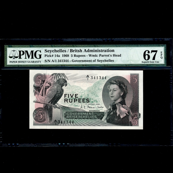 SEYCHELLES(¼¼À̼Ð)-#14a-PMG67-NO.341344-5 RUPEES-1968³â