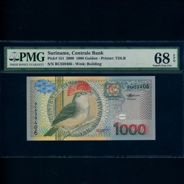 SURINAM-¼ö¸®³²-PMG68-1,000 GULDEN-#151-2000³â