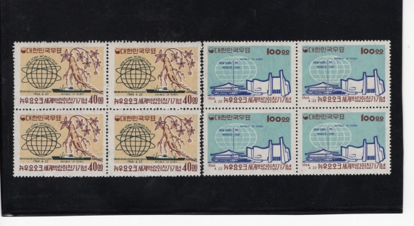 ´º¿å ¼¼°è¹Ú¶÷ȸ Âü°¡-2Á¾-4¸Å ÀüÇüºí·°-1964.4.22ÀÏ ¹ßÇàµÈ ¹°Ç°ÀÔ´Ï´Ù. »ó±â ¹°Ç°Àº ¿ÏÀü¹Ì»ç¿ë-MNH.OG ÀÔ´Ï´Ù.