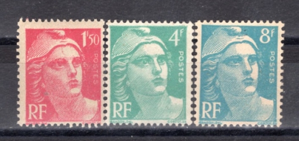 FRANCE(ÇÁ¶û½º)-#A147(3Á¾)-MARIANNE(¸¶¸®¾È)-1945³â ¹ßÇàµÈ ¹°Ç°À¸·Î ¹Ì»ç¿ë-ÈùÁö(LITTLE HINGED) ÀÔ´Ï´Ù.