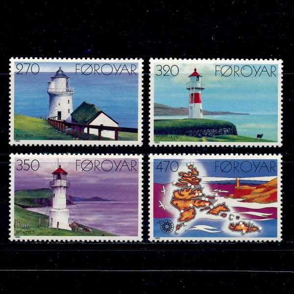 FAEROE ISLANDS(Æä·Î Á¦µµ)-#130~3(4Á¾)-LIGHTHOUSES(µî´ë)-1985.9.23ÀÏ  ¹ßÇàµÈ ¹°Ç°À¸·Î ¿ÏÀü¹Ì»ç¿ë-MNH.OG ÀÔ´Ï´Ù.