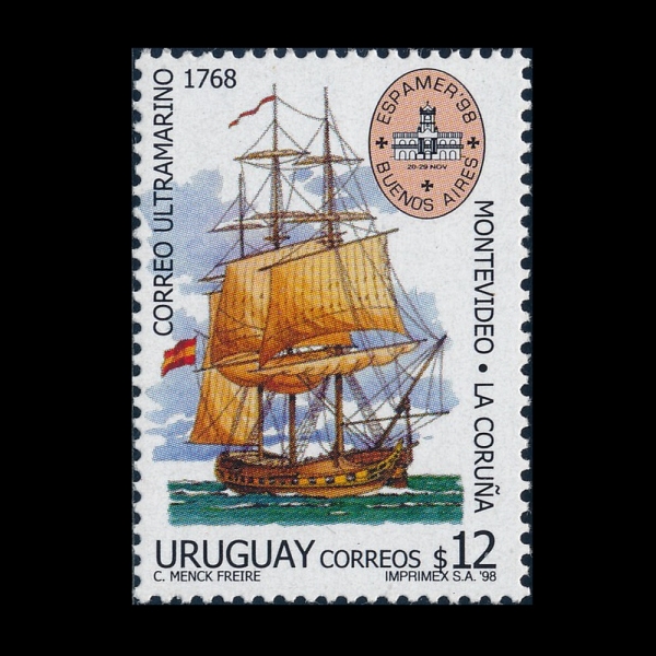 URUGUAY(¿ì·ç°úÀÌ)-#1739-12p-POSTAL LINK BETWEEN MONTEVIDEO AND CORUNNA, SPAIN, 230TH ANNIV.(¸óÅ׺ñµ¥¿À¿Í ½ºÆäÀÎ ÄÚ·ç³Ä »çÀÌÀÇ ¿ìÆí ¿¬°á)-1998.9.24ÀÏ ¹ßÇàµÈ ¹°Ç°À¸·Î ¿ÏÀü¹Ì»ç¿ë-MNH.OG ÀÔ´Ï´Ù.