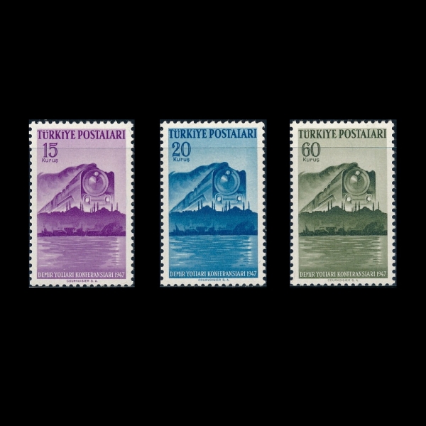TURKEY(Æ¢¸£Å°¿¹)-#960~2(3Á¾)-APPROACHING TRAIN, ISTANBUL SKYLINE AND SIRKECI TERMINUS(±âÂ÷, À̽ºÅººÒ ½ºÄ«À̶óÀÎ, ½Ã¸£ÄÉÄ¡ ±âÂ÷¿ª)-1947.10.9ÀÏ ¹ßÇàµÈ ¹°Ç°À¸·Î ¿ÏÀü¹Ì»ç¿ë-MNH.OG ÀÔ´Ï´Ù.