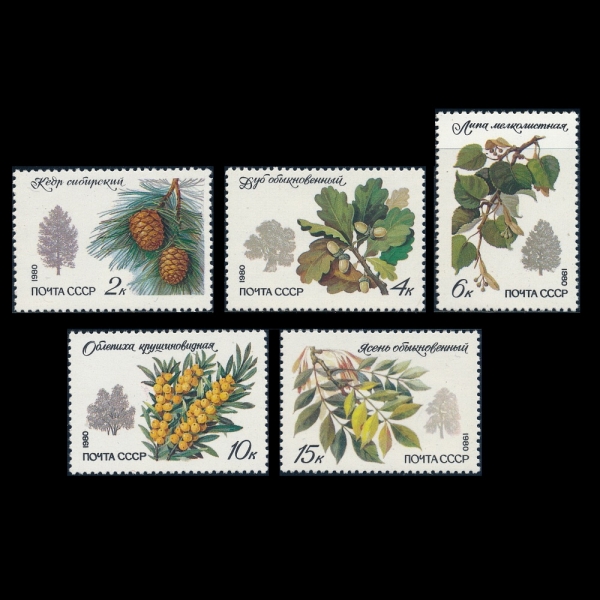 RUSSIA(·¯½Ã¾Æ)-#4871~5(5Á¾)-TREES(³ª¹«)-1980.9.29ÀÏ  ¹ßÇàµÈ ¹°Ç°À¸·Î ¿ÏÀü¹Ì»ç¿ë-MNH.OG ÀÔ´Ï´Ù.
