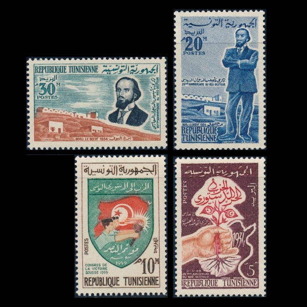 TUNISIA(Æ¢´ÏÁö)-#332~5(4Á¾)-HAND PLANTING SYMBOLIC TREE AND 25TH ANNIV. OF THE FOUNDING OF THE NEO-DESTOUR PARTY AT KASR HELAL(³ª¹« ½É±â, ½Å-µ¥Åõ¸£)-1959.3.2ÀÏ ¹ßÇàµÈ ¹°Ç°À¸·Î ¿ÏÀü¹Ì»ç¿ë-MNH.OG ÀÔ´Ï´Ù.
