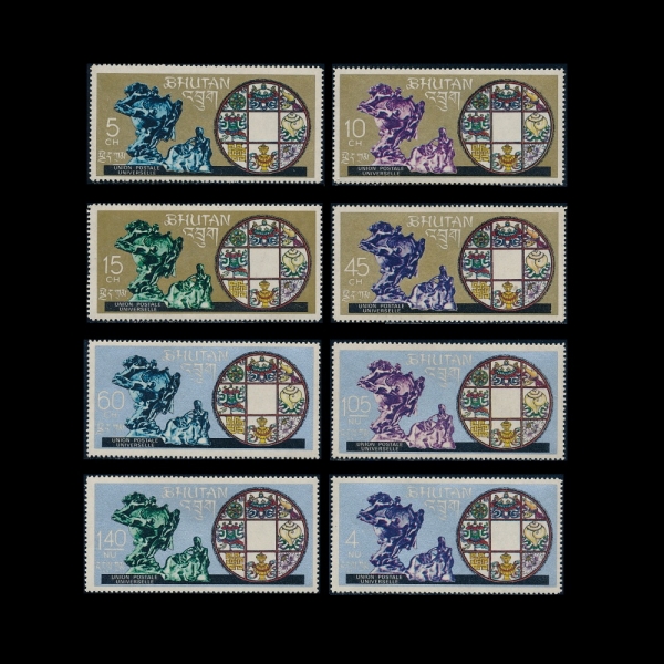 BHUTAN(ºÎź)-#102, 102A~G(8Á¾)-ADMISSION TO UPU(À¯´Ï¹ö¼³ ¿ìÆí ¿¬ÇÕ)-1969.5.2ÀÏ ¹ßÇàµÈ ¹°Ç°À¸·Î ¿ÏÀü¹Ì»ç¿ë-MNH.OG ÀÔ´Ï´Ù.
