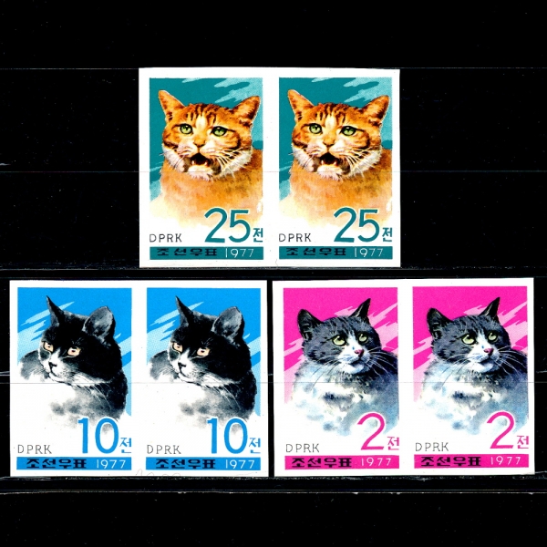 KOREA,DEMOCRATIC PEOPLE'S REPUBLIC(Á¶¼±ÀιÎÁÖÀǰøÈ­±¹)-IMPERF(¹«°ø 2¿¬)-#1607~9(3Á¾)-CATS(°í¾çÀÌ)-1977.8.10ÀÏ  ¹ßÇàµÈ ¹°Ç°À¸·Î ¿ÏÀü¹Ì»ç¿ë-MNH.OG ÀÔ´Ï´Ù.