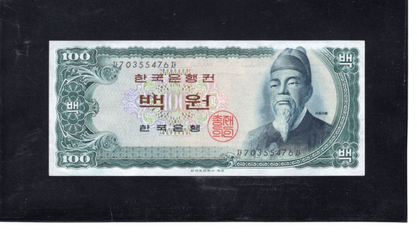 Çѱ¹ÀºÇà ´Ù 100¿ø±Ç-¼¼Á¾´ë¿Õ ÃÊ»ó-#53.9-¹ã»öÀμâ(70Æ÷ÀÎÆ®)-1965.8.14ÀÏ ¹ßÇàµÈ È­ÆóÀÔ´Ï´Ù. »ó±â ¹°Ç°Àº ¿ÏÀü¹Ì»ç¿ë-UNC ÀÔ´Ï´Ù.
