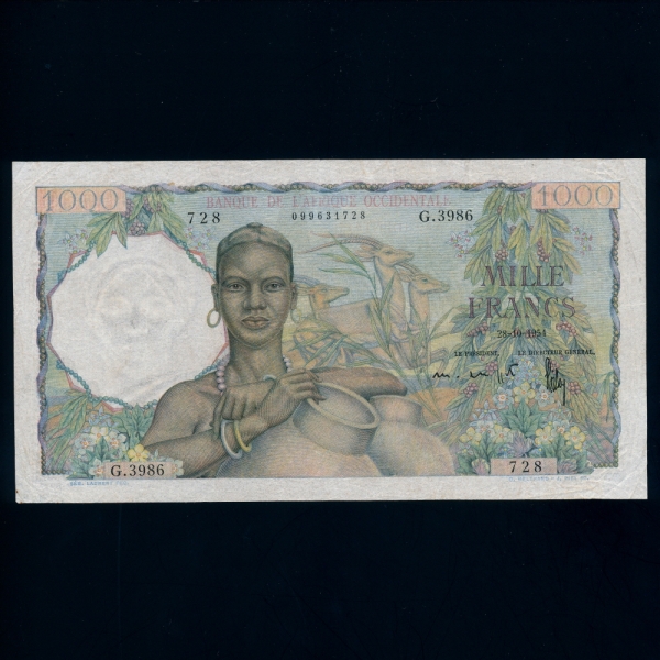 FRENCH WEST AFRICA-ÇÁ¶û½º·É ¼­¾ÆÇÁ¸®Ä«-P42-1,000 FRANCS-1948~1954³â ¹ßÇàµÈ ¹°Ç°ÀÔ´Ï´Ù. »ó±â ¹°Ç°Àº ¹Ìǰ-FINE»óÅ ÀÔ´Ï´Ù.