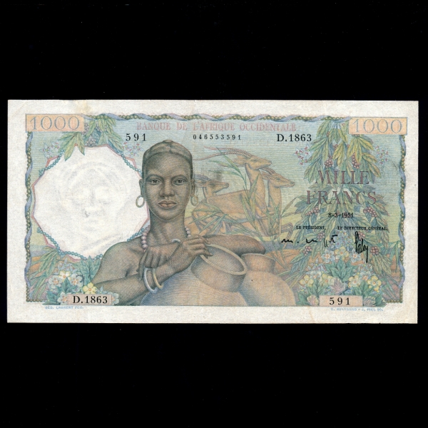 FRENCH WEST AFRICA-ÇÁ¶û½º·É ¼­¾ÆÇÁ¸®Ä«-P42-1,000 FRANCS-1948~1954³â ¹ßÇàµÈ ¹°Ç°ÀÔ´Ï´Ù. »ó±â ¹°Ç°Àº ±Ø¹Ìǰ-FINE»óÅ ÀÔ´Ï´Ù.