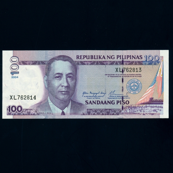 PHILIPPINES-Çʸ®ÇÉ-P194a-MANUEL ROXAS(¸¶´©¿¤ ·Ï»ç½º-´ëÅë·É)-NUMBER ERROR(»ó762813/ÇÏ762814)-100 PESOS-2004³â