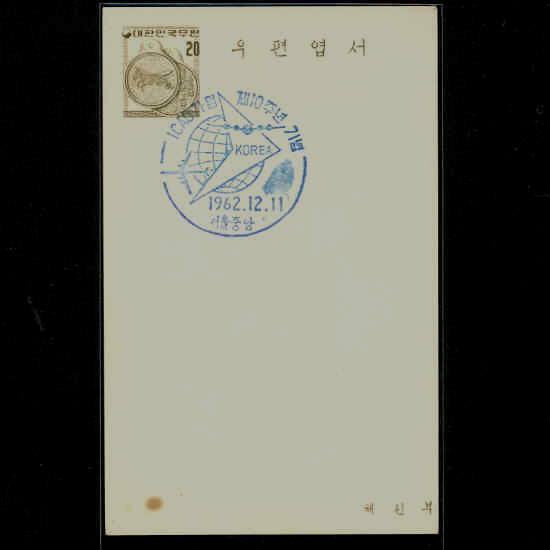 ICAO°¡ÀÔ Á¦10ÁÖ³â-¸¶ÆÐ¿±¼­ 20ȯ-¼­¿ïÁß¾Ó Åë½ÅÀϺÎÀÎ-1962.12.11ÀÏ