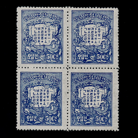 ÇÑ±Û 500³â-ÇÑ±Û ÀÚÀ½°ú ¸ðÀ½-4¸Å ÀüÇüºí·°-1946.10.9ÀÏ  ¹ßÇàµÈ ¹°Ç°ÀÔ´Ï´Ù. »ó±â ¹°Ç°Àº ¿ÏÀü¹Ì»ç¿ë-MNH.OGÀÔ´Ï´Ù.